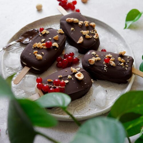Cavalco anche io il trend dell’estate con questi gelati alla nocciola vegan. Potrei chiamarli “Magnum” vegani o gelatini su stecco, scegliete voi il nome che preferite, il risultato non cambierà, resteranno deliziosi. Si compongono di un delicato ripieno alla nocciola 100% vegetale ricoperto di cioccolato fondente, si preparano in 10 minuti e sono facilissimi. Vi servirà solo un frullatore (è sufficiente anche uno piccolo per smoothies) e gli immancabili stampini per gelati in silicone.
