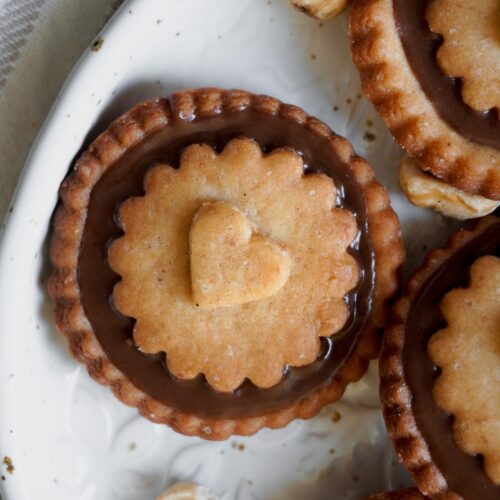 Lo ammetto, la Nutella è una delle mie più gradi passioni, e con lei anche i Nutella biscuits! Per questo ho deciso di provare a prepararli io, in versione vegetale, ed ecco qui i Nutella biscuits vegani. Si tratta di un guscio di frolla croccante alle nocciole, che racchiude una crema al cioccolato velocissima da preparare, ma se proprio non riuscite a resistere, usate la classica Nutella, o la mia nutella vegan.